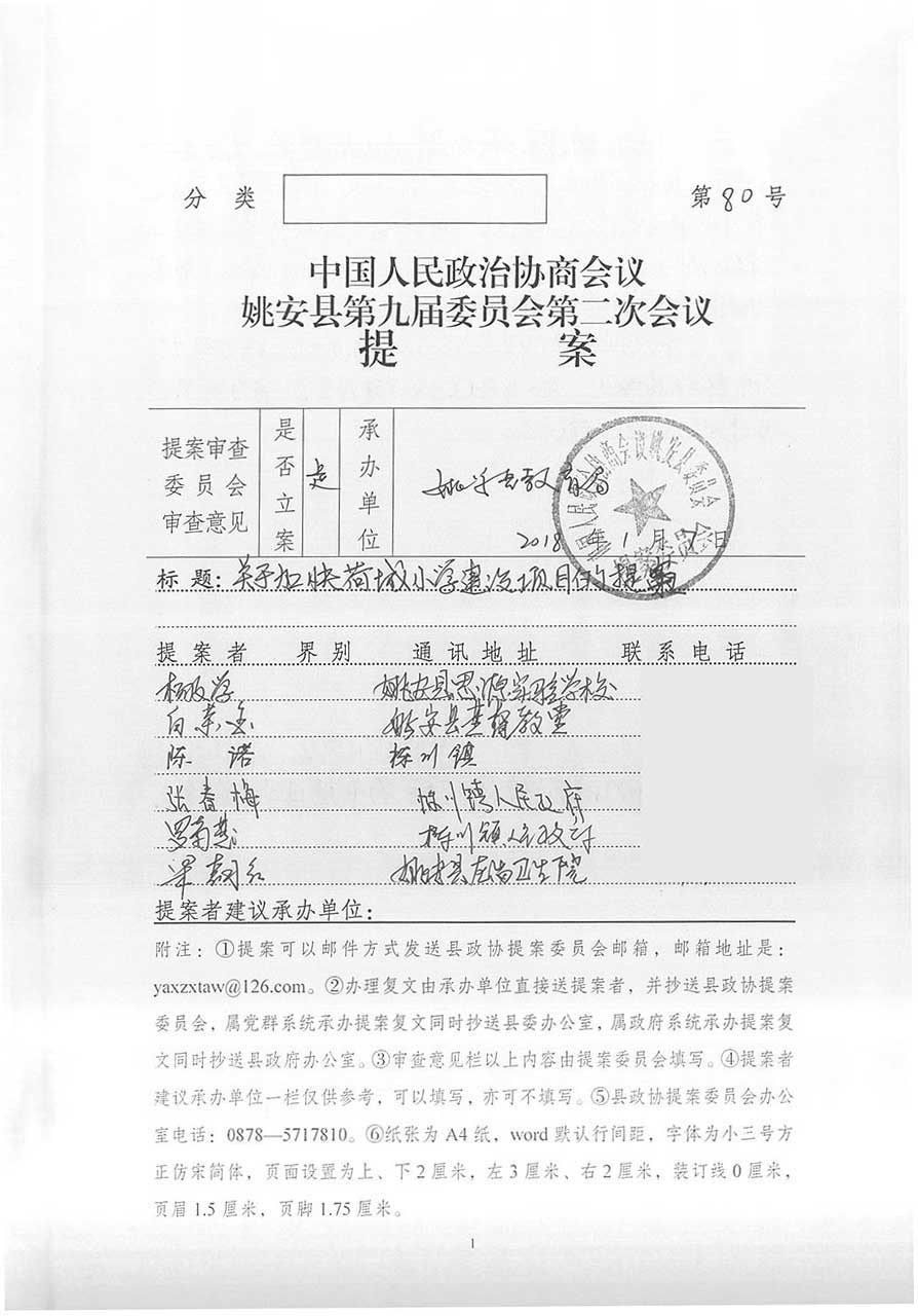 你们在政协姚安县第九届二次会议期间提出的“关于加快荷城小学建设项目的提案”非常切合我县城区义务教育教育发展的实际,指出了城区小学教育发展的关键,在此,我们对你们关心支持教育事业发展表示衷心地感谢!