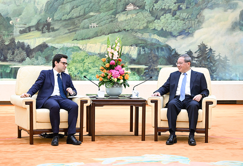4月1日下午,国务院总理李强在北京人民大会堂会见法国外长塞茹尔内。新华社记者 申宏 摄