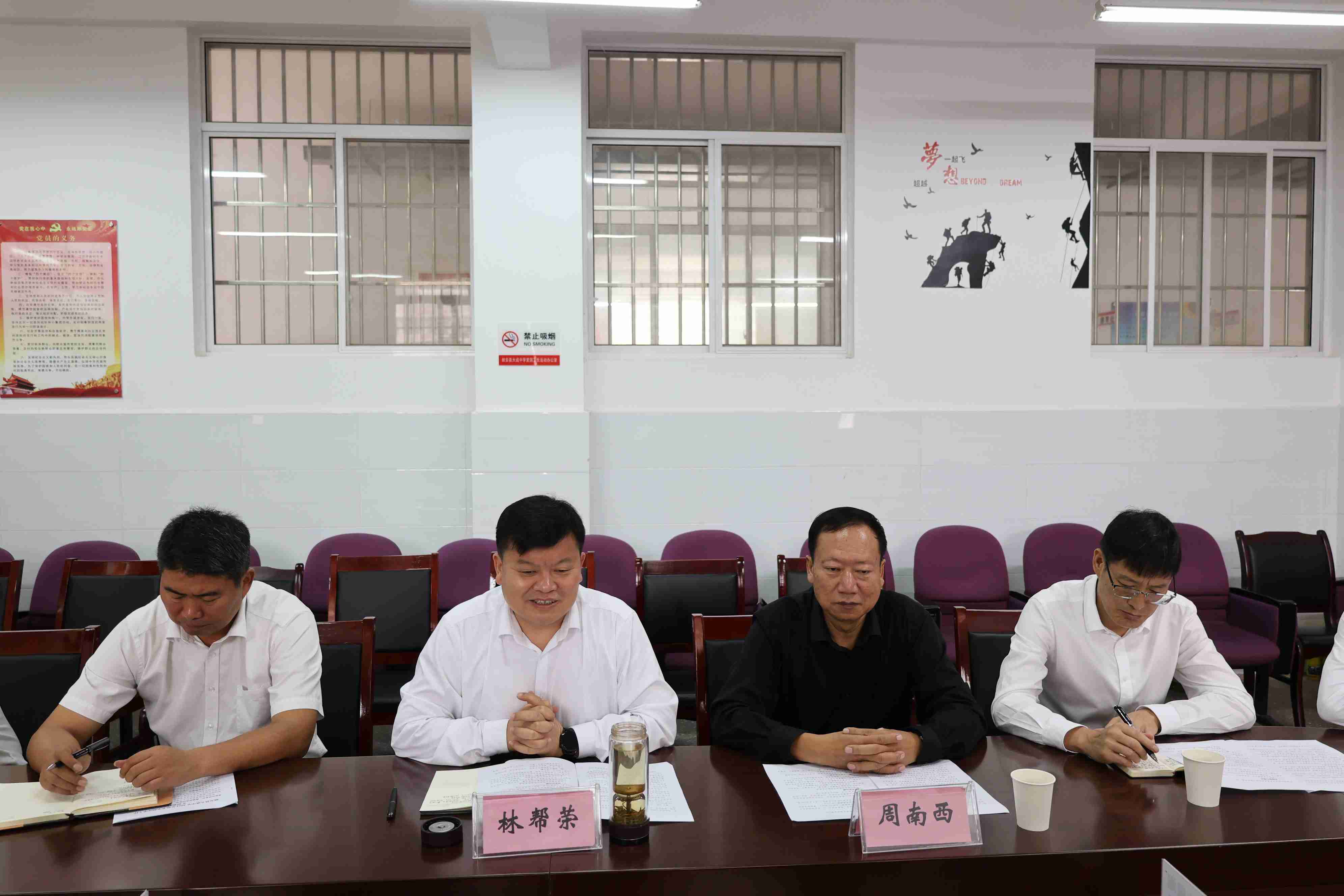 林县长一行参观校园后在学校会议室召开了座谈会。在听取了学校的工作汇报后,林县长仔细询问了学校新学期教师县管校聘、新生入学、控辍保学、五项管理、学校安全、国家教育惠民政策落实、强校提质等方面工作的开展情况及学校办学中存在的困难。在充分听取各方面情况的基础上,林县长作了总结性发言。