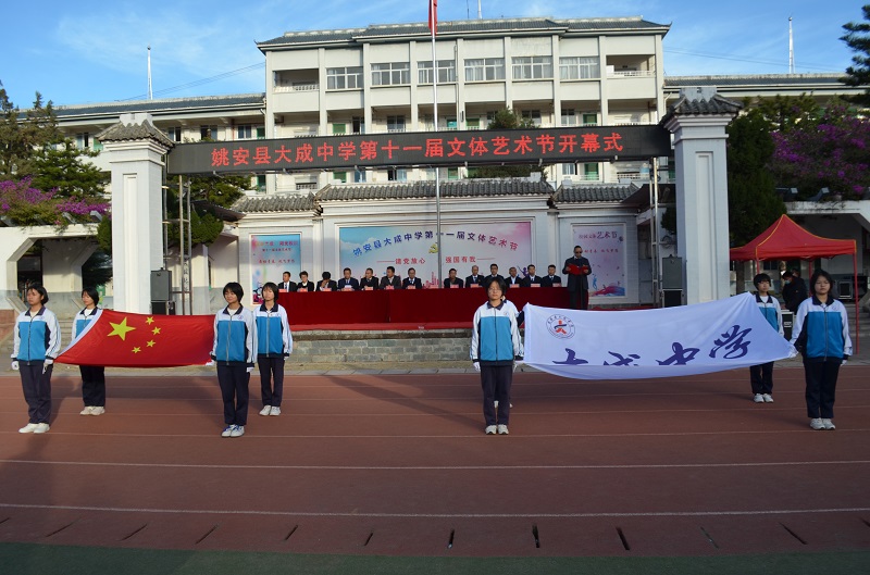 2022年12月8日,大成中学运动场彩旗飘扬,第十一届校园文体艺术节拉开帷幕。大成中学校长孙廷高致开幕词,强调了举办文体艺术节,是学校贯彻落实“双减”政策,坚持五育并举,继承和发展中华优秀传统文化,培养学生健康的身体素质和良好的艺术修养,丰富校园文化生活,提升学生综合素质。