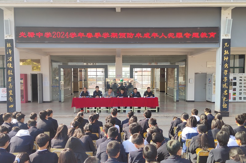 为进一步做好学校青少年法制宣传教育,使同学们学法、懂法、守法、用法,维护师生的合法权益,创建和谐校园、平安校园,为同学们营造健康成长的良好氛围。2024年3月19日上午,光禄中学邀请光禄派出所所长关以然到校开展2024年春季学期法制教育讲座。