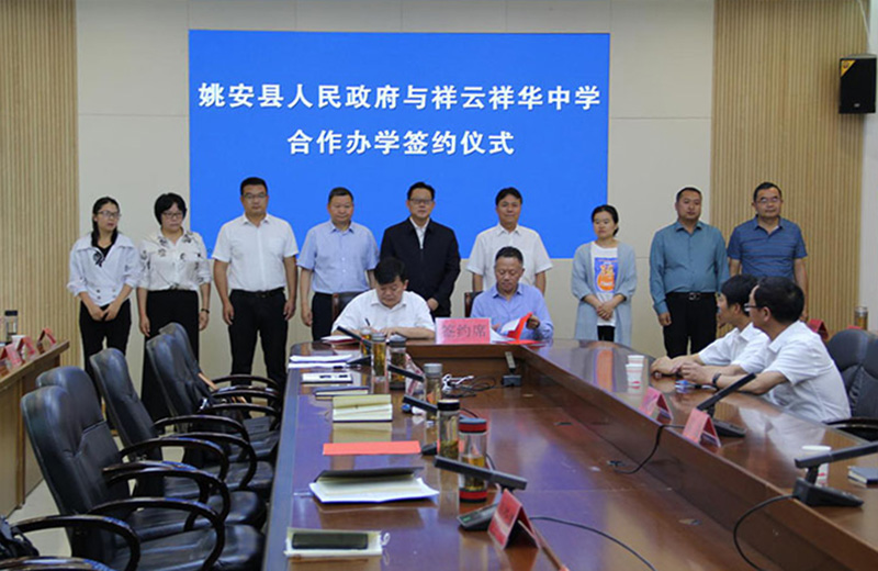 2022年7月4日,姚安县人民政府与祥云祥华中学举行合作办学签约仪式。县委书记雷波,县委副书记、县长林帮荣,县人大常委会主任昝丕政,县政协主席周晓东、县委常委、县人民政府常务副县长吴学剑,县委常委、县委办主任阳春红、县人大常委会副主任杨海虹、县人民政府副县长马丽、县政协副主席潘建勋出席了签约仪式;栋川镇、光禄镇、前场镇、弥兴镇、左门乡党委书记,部分县级部门主要领导及各学校校长参加了签约仪式。