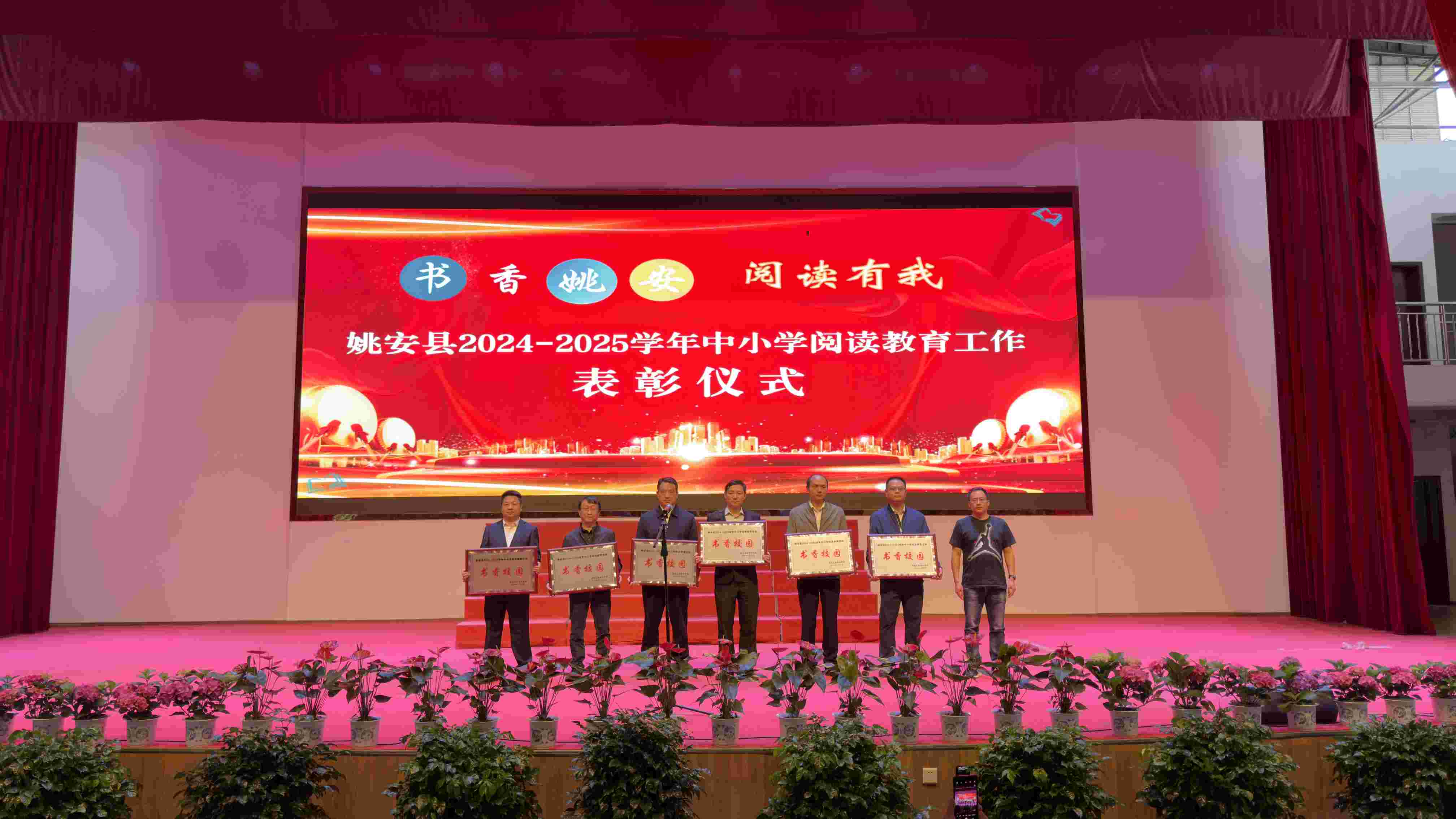 为深入推进全县中小学阅读教育工作,总结工作成效,表扬先进典型,持续推动“书香校园”建设,2025年5月29日下午,姚安县2025第二期阅读教育成果展示活动暨2024-2025学年中小学阅读教育工作表扬大会在姚安一中报告厅举行。县教育体育局党政班子成员;局机关各股室负责人,县教研室全体教研员;各乡镇中心小学、中学,县属各学校校长、教学副校长、教务主任;2024-2025学年阅读教育考核获奖代表;姚安一中、栋川小学部分师生共计600余人参加了活动。表扬大会由县教育体育局教学研究室负责人主持。