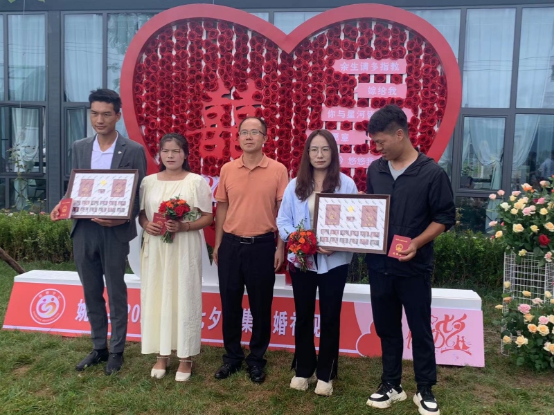 2024年8月10日(七夕节)当天,姚安县共办理结婚登记17对,为14对新人进行了集体颁证。这次集体颁证仪式,以隆重热烈、简朴温馨的形式,弘扬移风易俗、婚事新办的社会新风,倡导文明节俭、健康向上的生活方式,符合时代的要求和青年的特征,是一次形式新颖、意义深远的活动;是贯彻党的二十大精神,深入开展讲文明、树新风活动的具体体现,将进一步推进移风易俗、婚俗改革,弘扬社会文明新风,增进家庭幸福和社会和谐,有力推动我县精神文明建设。(石有国 周兴宏)