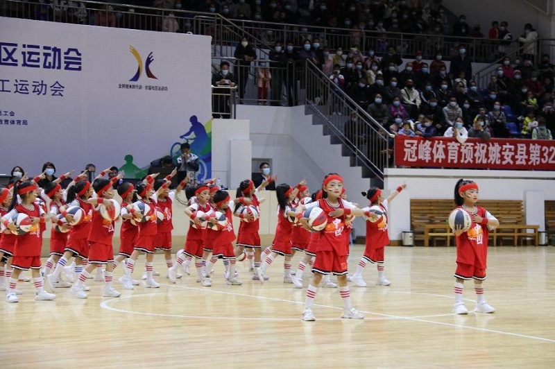 开幕式结束后,举行了啦啦操表演和本届职工运动会首场篮球比赛。(李云/文 刘耘/图)