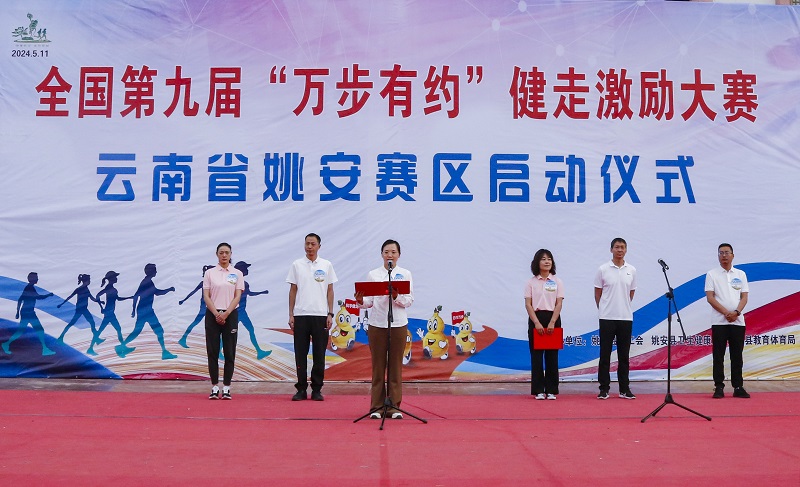 2024年5月11日上午,云南省第九届“万步有约”健走激励大赛姚安赛区比赛启动仪式在县城梅葛广场举行,为期100天的健走比赛正式拉开帷幕。县人民政府副县长杨家仙出席启动仪式并致辞。本次比赛由县教育体育局、县卫生健康局、县总工会三家单位主办,全县各部门46支健走队伍583人参加比赛。