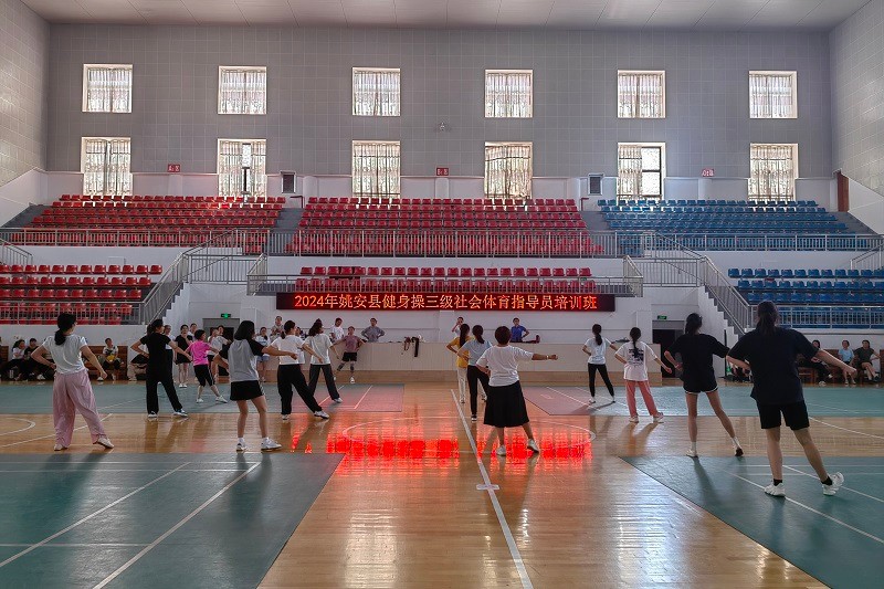 为响应全民健身的号召,提升社会体育指导员的业务能力和服务水平,姚安县全民健身指导协调委员会于6月20日—21日在姚安县体育馆内举办了2024年健身操三级社会体育指导员培训班。