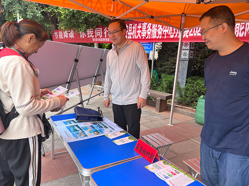 为深入贯彻习近平生态文明思想和绿色发展理念,倡导绿色生产生活方式,充分发挥公共机构在全社会绿色低碳发展中的示范引领作用,在全县营造节能低碳浓厚氛围,7月12日,姚安县机关事务服务中心牵头在梅葛广场开展以“节能降碳,你我同行”为主题的节能宣传活动,共有20余家单位参与此次宣传活动。
