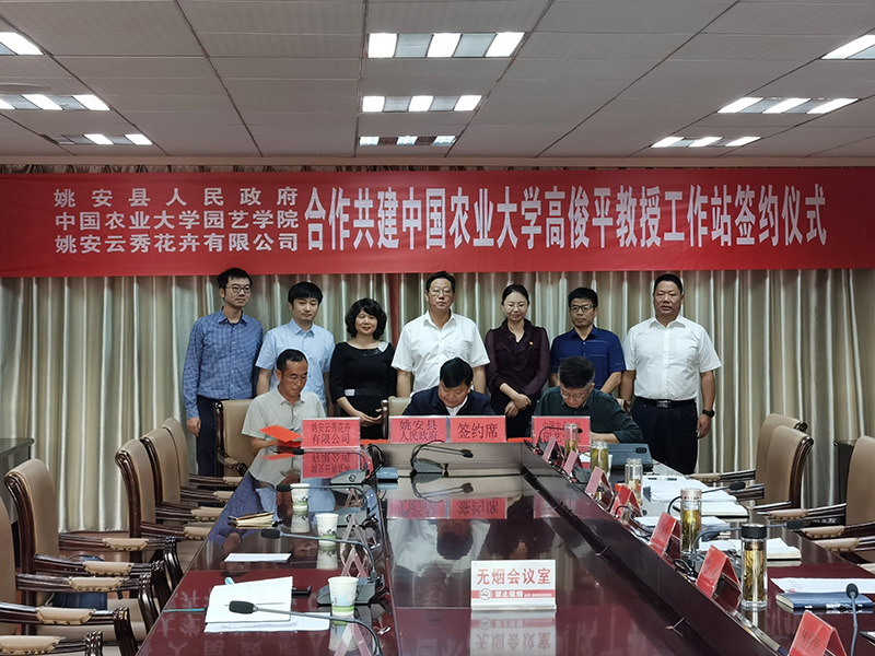 10月8日,姚安县人民政府与中国农业大学园艺学院、姚安云秀花卉有限公司签订《姚安县人民政府 中国农业大学园艺学院 姚安云秀花卉有限公司关于合作共建中国农业大学高俊平教授工作站框架协议》。