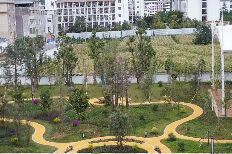 (一)充分整合资源,移栽本地优良树种。栋川小学集中绿地(游园)中的大树,是从姚安县第二幼儿园移栽过来的。因二幼改造园区,园内几棵参天大树都是本地树枝,都有着几十年的树龄,长得粗壮结实、枝繁叶茂,有滇朴、黄连木等优良品种。这样高品质的乔木,栋川小学岂能错过,于是栋川小学按照校园规划迅速整理出场地,把这一批参天大树迅速移栽过来,既节约了建设成本,贯彻落实了“提高种植本地树种”的文件精神。在学校的精心养护下,移栽的树木长势良好、生机勃勃。