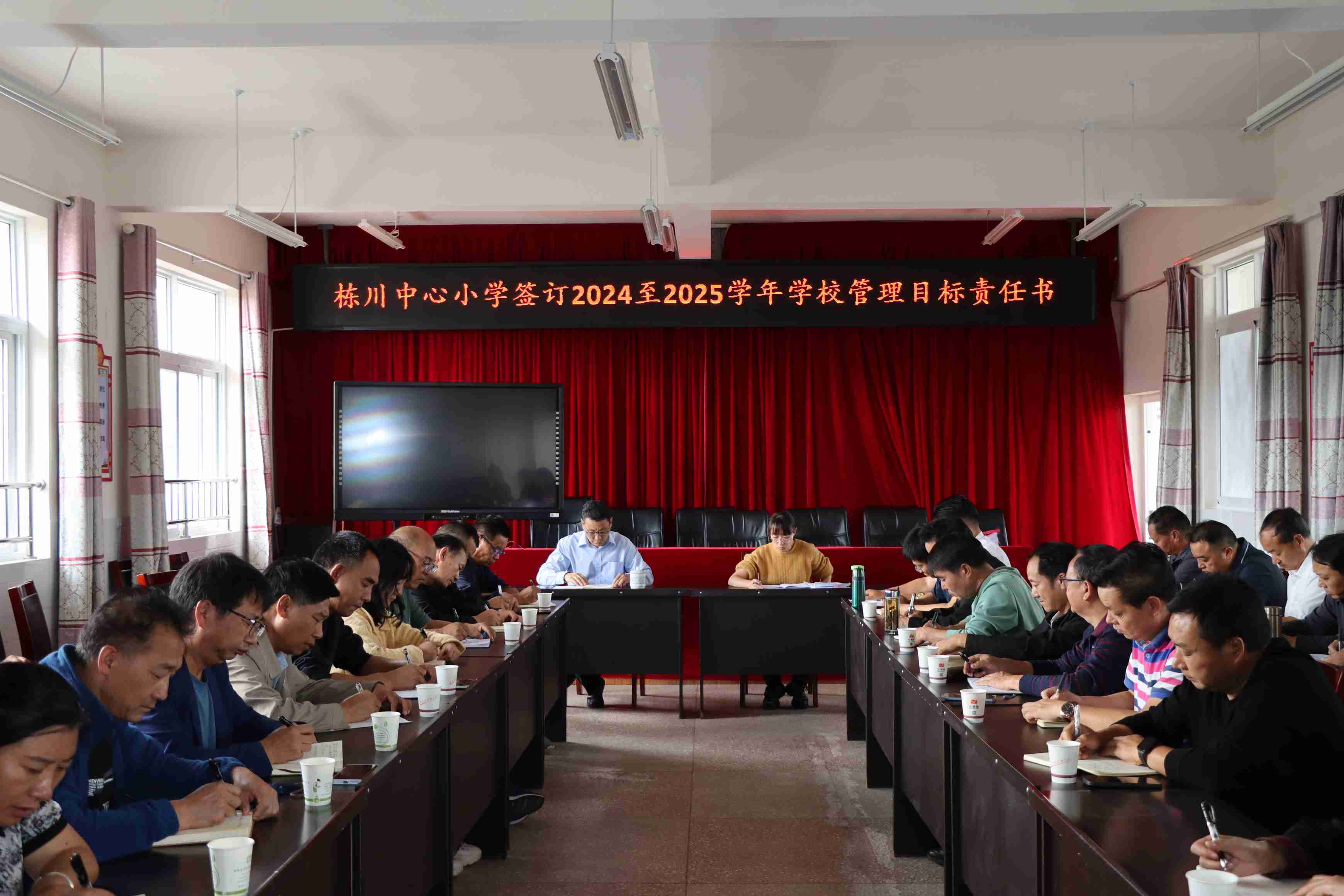 2024年10月11日下午,为进一步强化工作过程和目标管理,明确责任意识,推动学校高质量可持续发展,夯实学校发展基础,栋川中心小学与全镇21所小学、幼儿园签订2024至2025学年学校管理目标责任书。