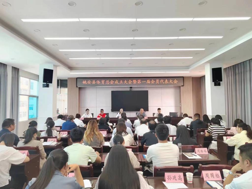 7月25日,姚安县体育总会成立大会暨第一届会员代表大会在姚安县教育体育局召开。来自姚安县教育体育系统和县直属有关部门负责人,乡镇负责人、体育企业、体育协会、新闻媒体的代表,运动员、教练员、裁判员等共60余人参加了本次大会。