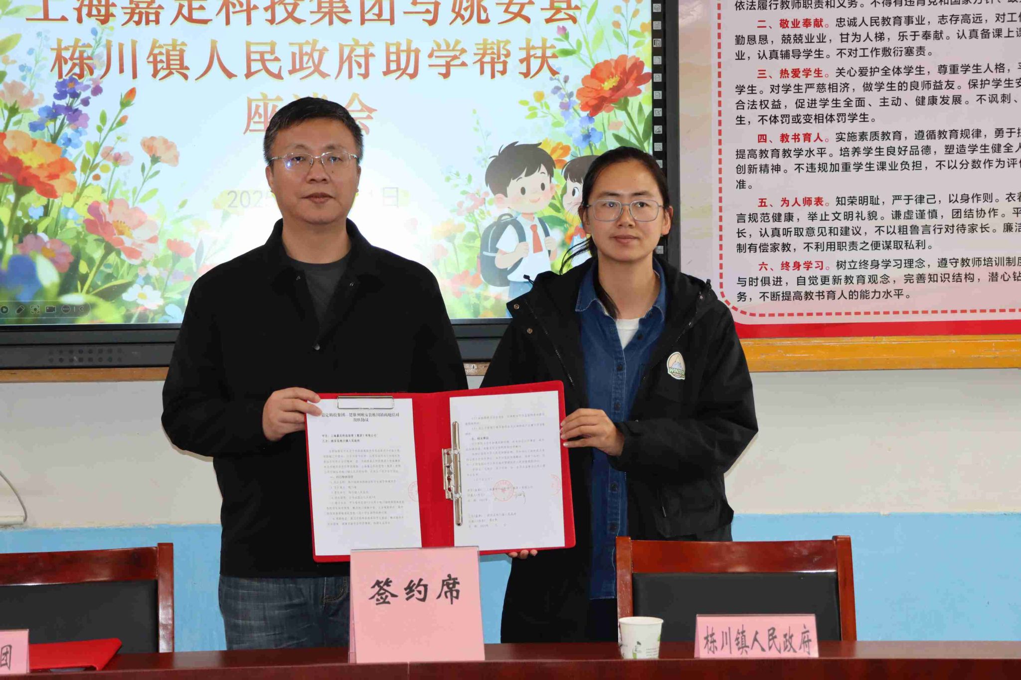 会上,上海嘉定科投集团党委副书记、纪委书记王建锋向受助学生代表发放了学习用品,并与栋川镇党委、政府正式签订了帮扶合约。