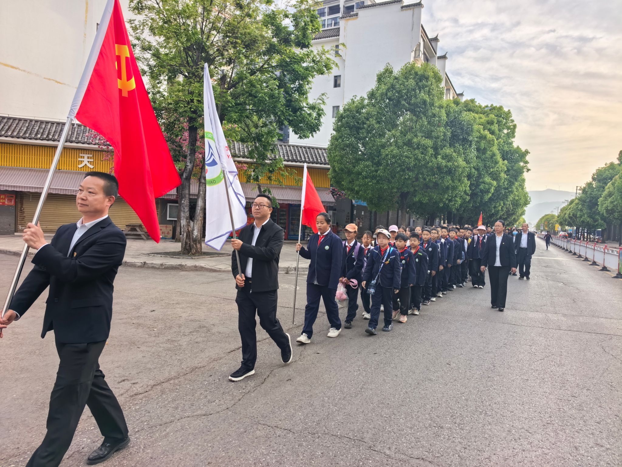 4月1日,在县妇幼保健院、县公安局交通管理大队的志愿护航下,我校组织党员教师及五年级师生徒步前往姚安县烈士陵园,开展“行走的思政课”清明祭扫活动。全体师生徒步前进,全程肃穆有序,在行走中追忆英烈事迹、感悟革命精神。