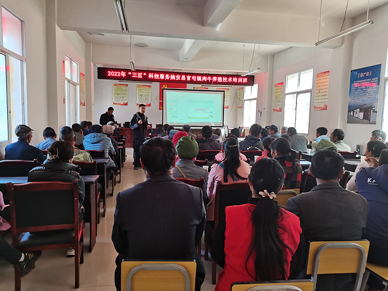 近日,姚安县动物疫病预防控制中心在官屯镇连厂村委会举办“三区”科技培训班,组织部分肉牛养殖户和意向养牛户共计100人进行培训。此次培训内容围绕养殖户关心及迫切需求的肉牛养殖政策,养殖技术知识开展,为广大养殖户提供政策解读及养殖过程中常见的动物疫病防控知识。通过培训,使养殖户了解姚安县肉牛养殖扶持政策及如何申报,当前肉牛养殖存在的问题及解决方法等困扰肉牛养殖户的问题。