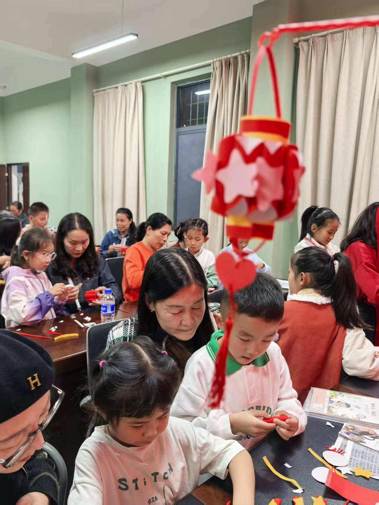 手工制作区域热闹非凡。在手工老师的指导下,家长与孩子协作完成中秋灯笼制作。孩子们在动手实践中不仅锻炼了创造能力,更表达了对美好生活和祖国生日的真挚祝福。