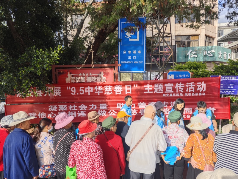 2025年9月5日,姚安县民政局牵头在梅葛广场举办第十个“中华慈善日”宣传活动,以“汇聚向善力量 共创美好生活”为主题,吸引众多群众参与。活动旨在深入宣传《中华人民共和国慈善法》、弘扬慈善文化,引导社会力量积极投身慈善事业,为全县慈善事业发展注入活力。
