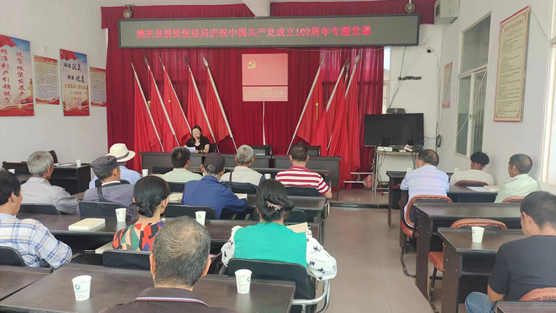 为庆祝中国共产党成立102周年,6月28日,县投资促进局党组书记、局长钟欣妤深入挂包的弥兴镇朱街村,为全村党员讲述了党课。
