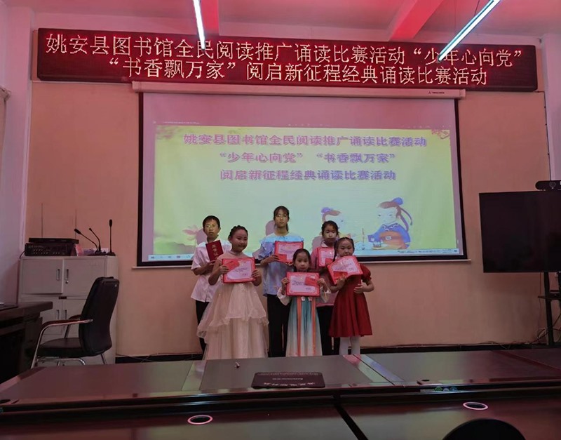 为了进一步强化对少年儿童的思想引领和价值观塑造,进一步推动姚安县全民阅读活动纵向深入,营造“多读书、读好书”的文化环境。2023年7月14日晚上7点,姚安县图书馆举办了“少年心向党”“书香飘万家”阅启新征程经典诵读比赛。