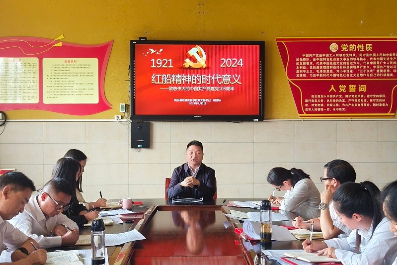 为庆祝中国共产党成立103周年,继承和弘扬党的光辉传统和优良作风,2024年7月1日,姚安县思源实验学校党支部开展庆祝“七一”党员大会。