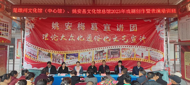 为深入贯彻学习习近平总书记关于文艺工作重要论述和考察云南重要讲话精神,促进群众文化繁荣发展,楚雄州文化馆(中心馆)、姚安县文化馆总馆2023年戏剧创作暨表演培训班于2023年6月14至15日在姚安农戏协会和协会戏曲创作基地成功举办,县委宣传部、县文联相关领导到会指导。