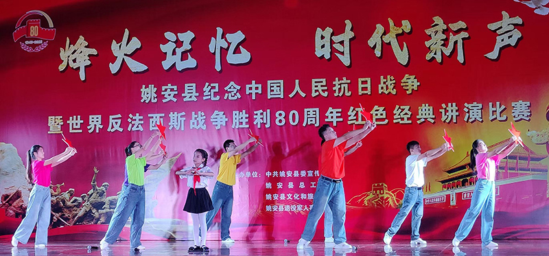 9月29日,为纪念中国人民抗日战争暨世界反法西斯战争胜利80周年,一场主题为“烽火记忆 时代新声”的红色经典讲演活动在姚安县梅葛广场隆重举行。本次活动由中共姚安县委宣传部、县总工会、县文化和旅游局、县退役军人事务局联合主办,旨在通过艺术化的形式重温峥嵘岁月,传承红色基因,激发全县人民的爱国热情与奋斗精神。