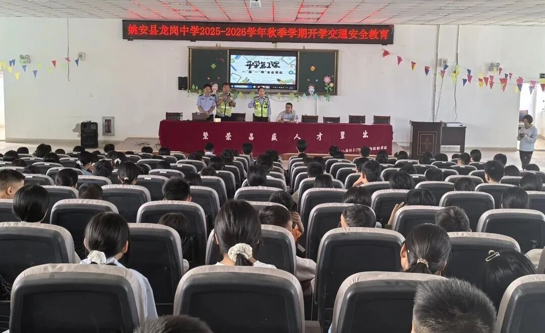 为进一步提升学生交通安全意识和自我防护能力,切实做好新学期校园交通安全管理工作,自开学以来,姚安县公安局交通管理大队组织民警先后走进姚安一中、龙岗中学、大成中学,以道路交通安全“开学第一课”为主题开展宣传活动。