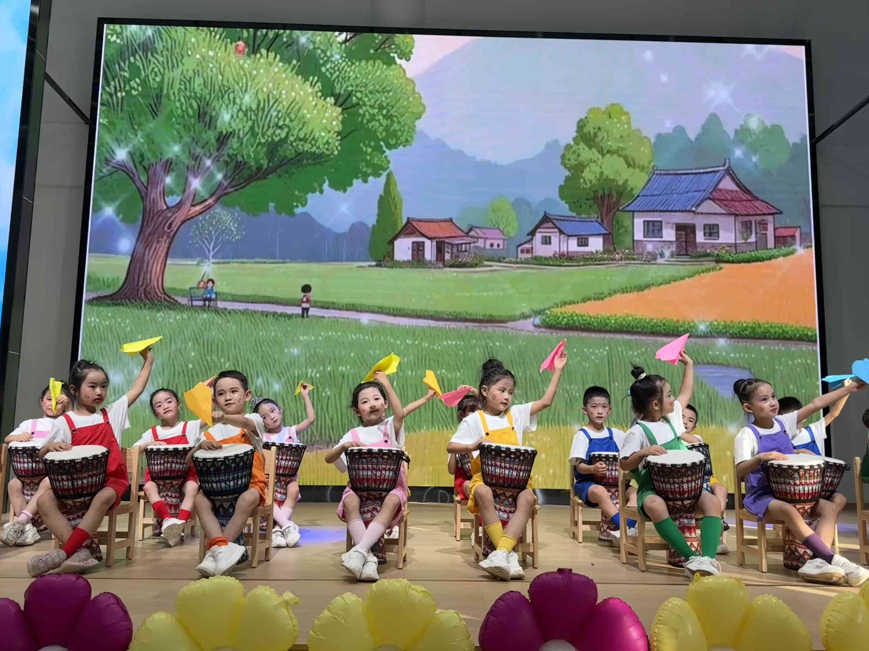 幼儿创作的毕业画卷上,孩子们用五彩画笔尽情挥洒,生动勾勒出三年来在幼儿园的成长点滴,承载着他们纯真的情感与难忘的回忆。