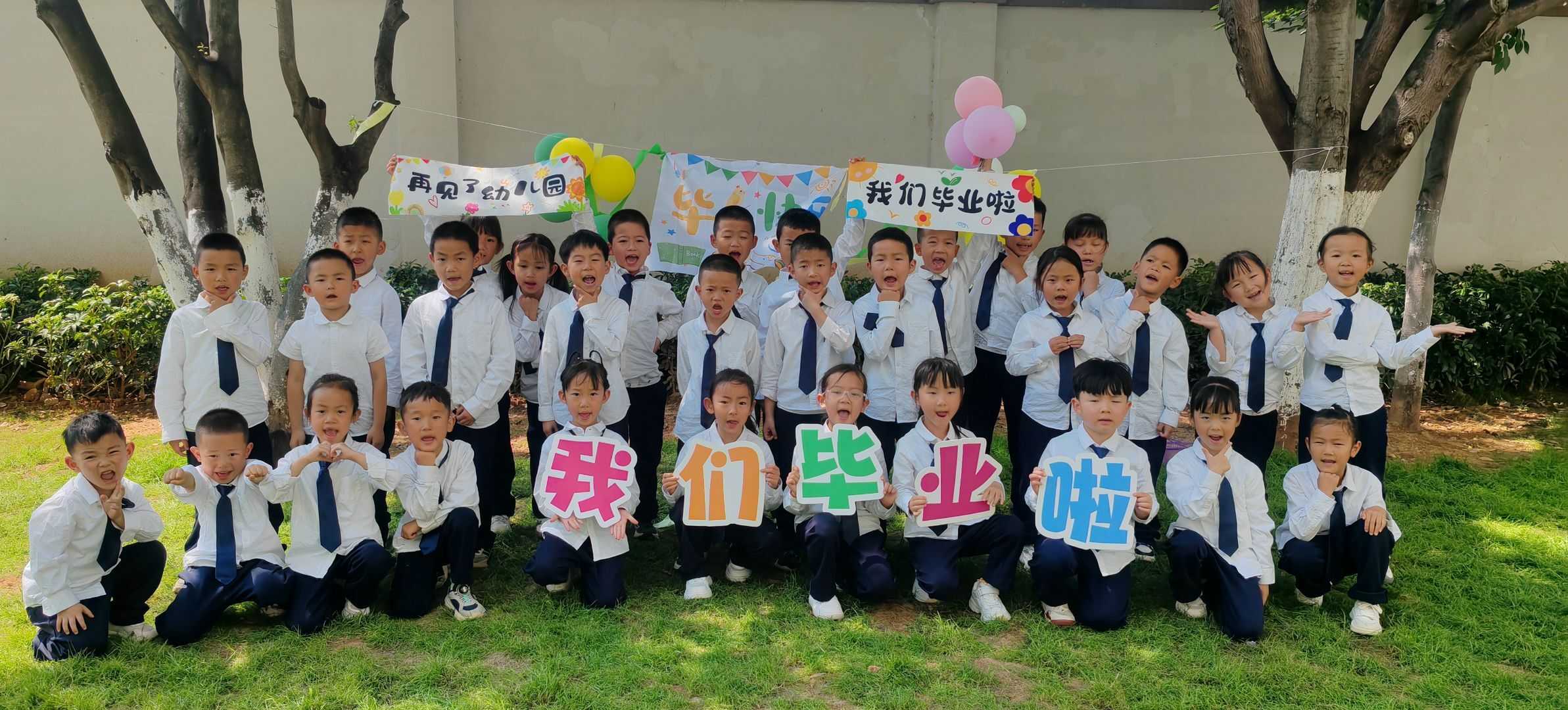 毕业创意照拍摄现场洋溢着欢乐氛围,孩子们用童趣十足的方式定格下幼儿园时光的美好瞬间。