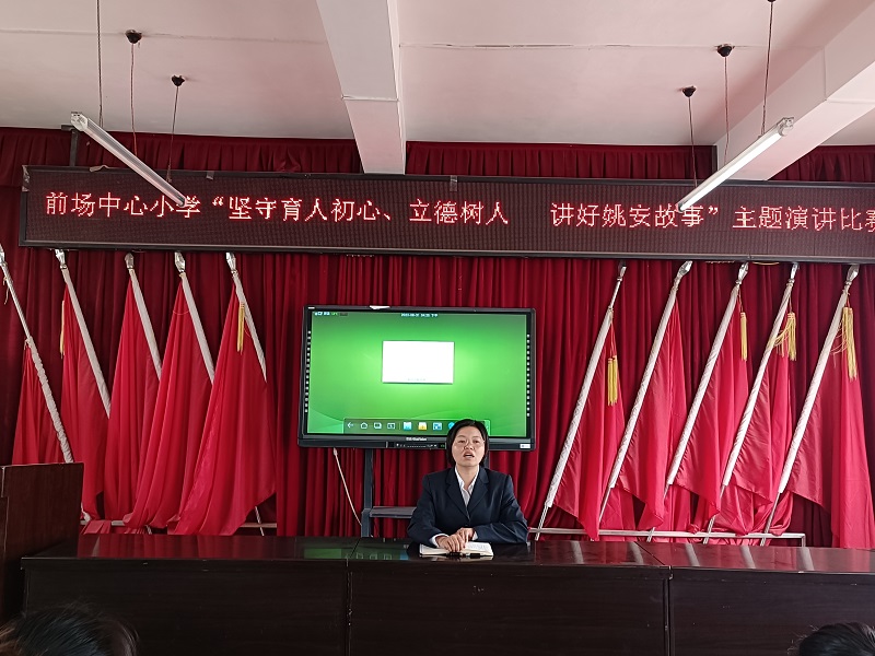 近日,前场中心小学开展了以“坚守育人初心 立德树人 讲好姚安故事”为主题的庆祝第39个教师节演讲活动。本次活动前场中心小学共推荐10名优秀选手参加,共35名观摩教师参加活动。