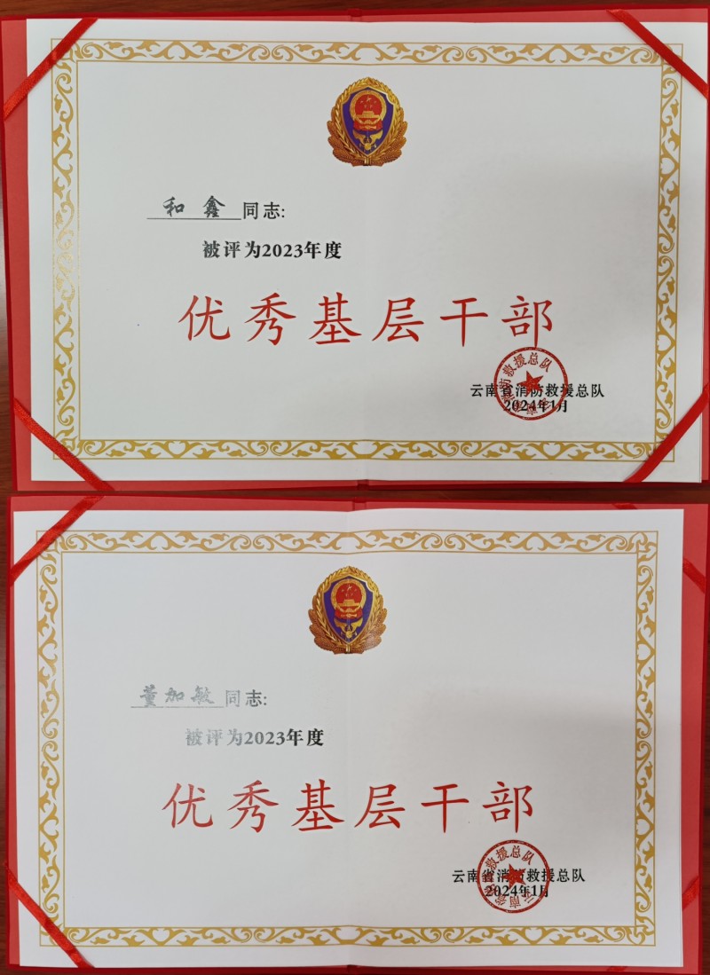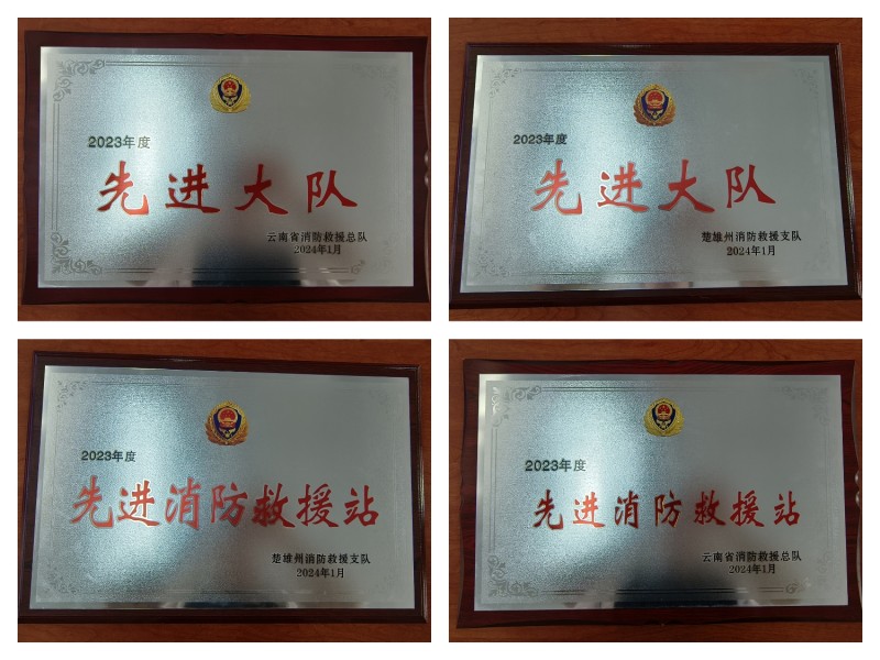 2023年,大队被总队表彰为2023年度“先进大队”,大队被表彰为2023年度州级“先进大队”,大队工会被楚雄州总工会表彰为2023年度“共享职工之家”,大队被评为州级“民族团结示范单位”,大队被表彰为十三届楚雄州“文明单位”,金秀谷救援站被表彰为2023年度全省“先进消防救援站”,金秀谷救援站被表彰为2023年度全省“安全工作先进消防救援站”,金秀谷救援站被表彰为2023年度州级“先进消防救援站”,大队被表彰为姚安县“民族团结进步模范集体”,大队被表彰为姚安县“精神文明创建先进集体”,大队被姚安县表彰为“最美退役军人志愿服务队称号”;大队党委被表彰为全省“先进基层党组织”,政治教导员和鑫同志被表彰为全省“优秀党务工作者”,大队长黄丽勇同志被楚雄州文明委表彰为“第八届楚雄州道德模范”,教导员和鑫、刘思莹、董加敏等同志被表彰为2023年度“优秀基层干部”,政治教导员和鑫家庭荣获2023年姚安县“清廉家庭”称号,董加敏家庭荣获“民族团结进步示范家庭”称号,刘思莹同志被评为姚安县“第一届劳动模范和先进工作者”,普万江同志被姚安县评为“最美退役军人”,郭盛龙同志被评为“楚雄彝族自治州青年联合会第五届委员”,董昊如同志被评为2023年度驻村队员先进个人,张炜晨同志被支队记三等功,大队长黄丽勇等9名同志被支队授予“嘉奖”,杜家强、李学涛同志被表彰为“优秀消防员”,鲁国华等5名同志被表彰为“优秀专职消防员”;在支队首届消防+电力速报员比武竞赛暨2023年“彝乡利剑·铁血消防”大比拼比武中大队荣获团体第三名、前突通讯科目荣获团体第一名、大队长黄丽勇同志荣获5X10折返跑第一名的优异成绩。