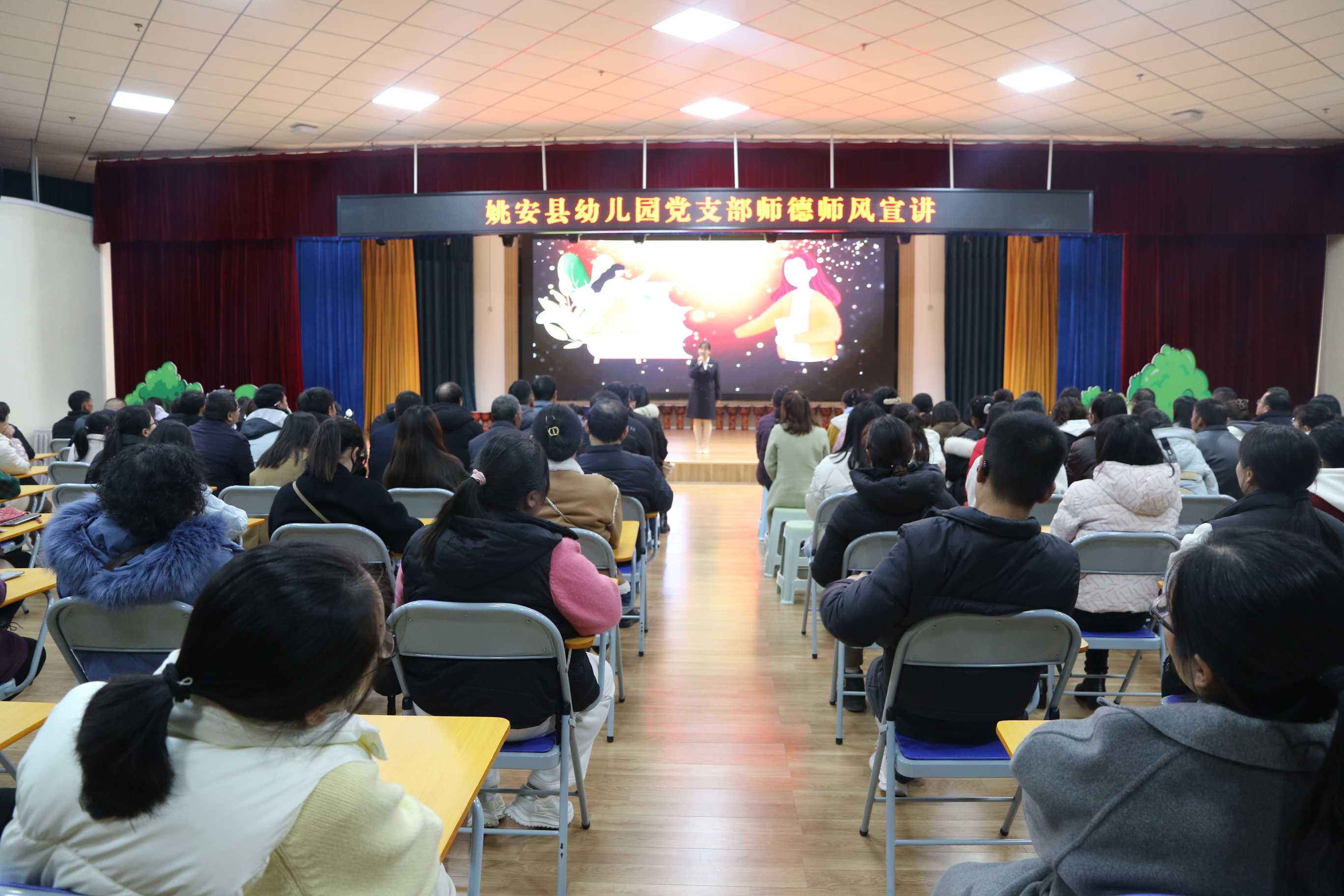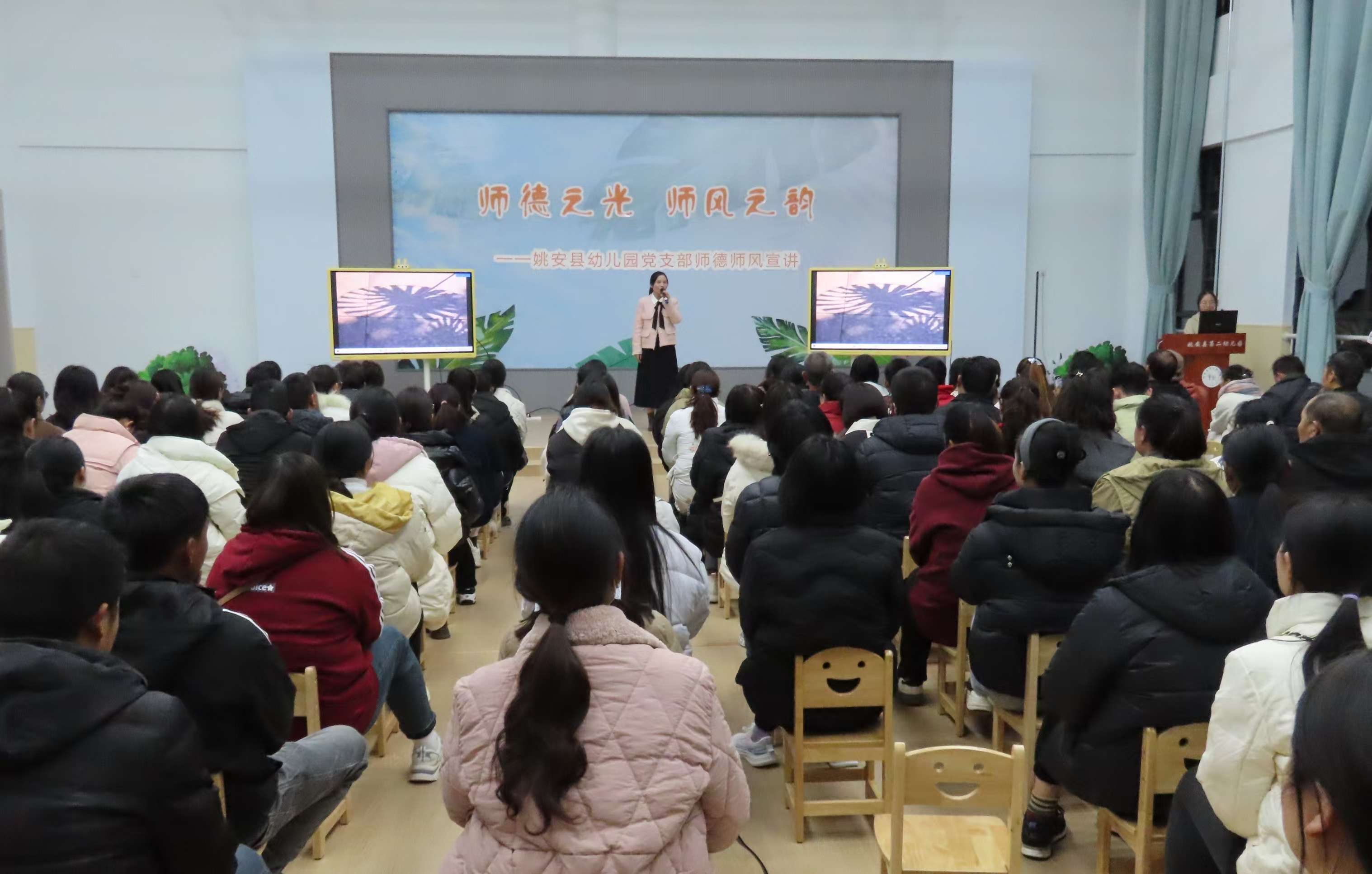 为深入学习党的二十大精神,贯彻落实习近平总书记关于教育的重要论述,落实立德树人根本任务,大力弘扬教育家精神,提升教师职业道德素养,巩固党纪学习教育成果,持续加强师德师风建设,加强新时代高素质专业化幼儿教师队伍建设,进一步营造尊师重教良好氛围。姚安县幼儿园党支部于2024年12月25日、26日分别在县幼、二幼两个园区组织“师德之光师风之韵”主题宣讲活动。近400名幼儿家长和教师参加了活动。