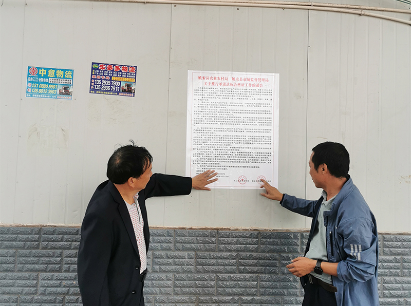 共检查食用农产品生产经营单位33家,粘贴通告52张。进一步提高生产主体和公众对推行承诺达标合格证制度的认识和知晓率,进一步压实生产主体的质量安全主体责任。(訾娟)