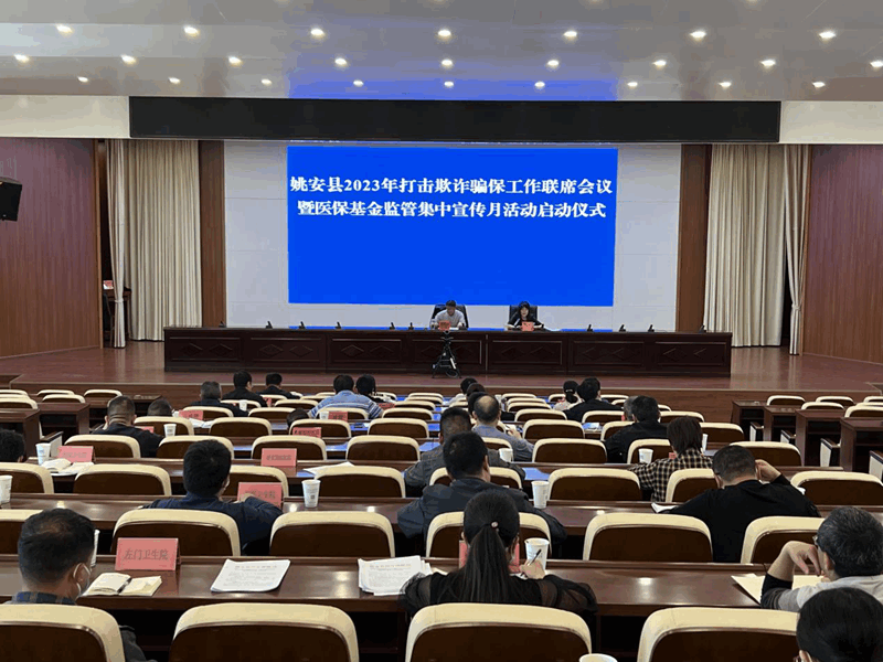 2023年4月6日,姚安县2023年打击欺诈骗保工作联席会议暨医保基金监管集中宣传月活动启动仪式在县人民政府会务中心举行。县打击欺诈骗保工作联席会议成员单位分管领导;县纪委县监委驻县财政局纪检监察组领导;县医保局领导及相关股室负责人;县级定点医药机构主要负责人;各乡镇卫生院院长参加了会议。县人民政府副县长、县打击欺诈骗保工作联席会议召集人郭汝金同志出席会议。