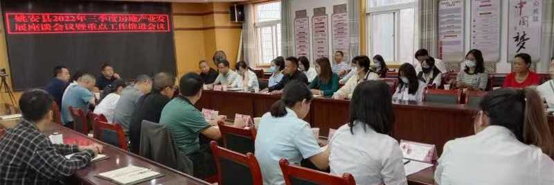为进一步了解我县2022年房地产行业发展现状,分析研究当前面临的困难问题,强化工作措施,加大工作力度,促进全县房地产行业平稳健康发展,姚安县住房和城乡建设局于2022年9月29日召开2022年第三季度房地产业发展座谈会议暨重点工作推进会议。县人民政府副县长郭汝金出席会议并讲话,县住建局党组书记、局长杨文昌主持会议,并邀请县各机关单位和相关银行以及企业负责人和销售参加会议。各与会人员对房地产企业的发展充分交换意见,并对面临的难题提出相应解决办法。