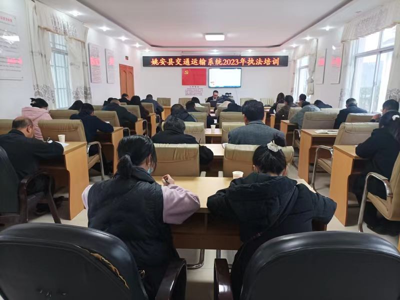 为进一步提升交通运输系统干部职工对相关法律法规掌握和运用,形成学法、知法、守法、用法贯穿工作生活,进一步提高交通运输执法规范性和管理严谨性,11月20日上午,姚安县交通运输局开展2023年执法培训会,邀请云南兴滇(姚安)律师事务所主任王云勇对交通运输系统全体干部职工开展行政执法专题培训,全县交通运输系统全体干部职工和楚雄州交通运输综合行政执法支队姚安大队共计35人参加会议。