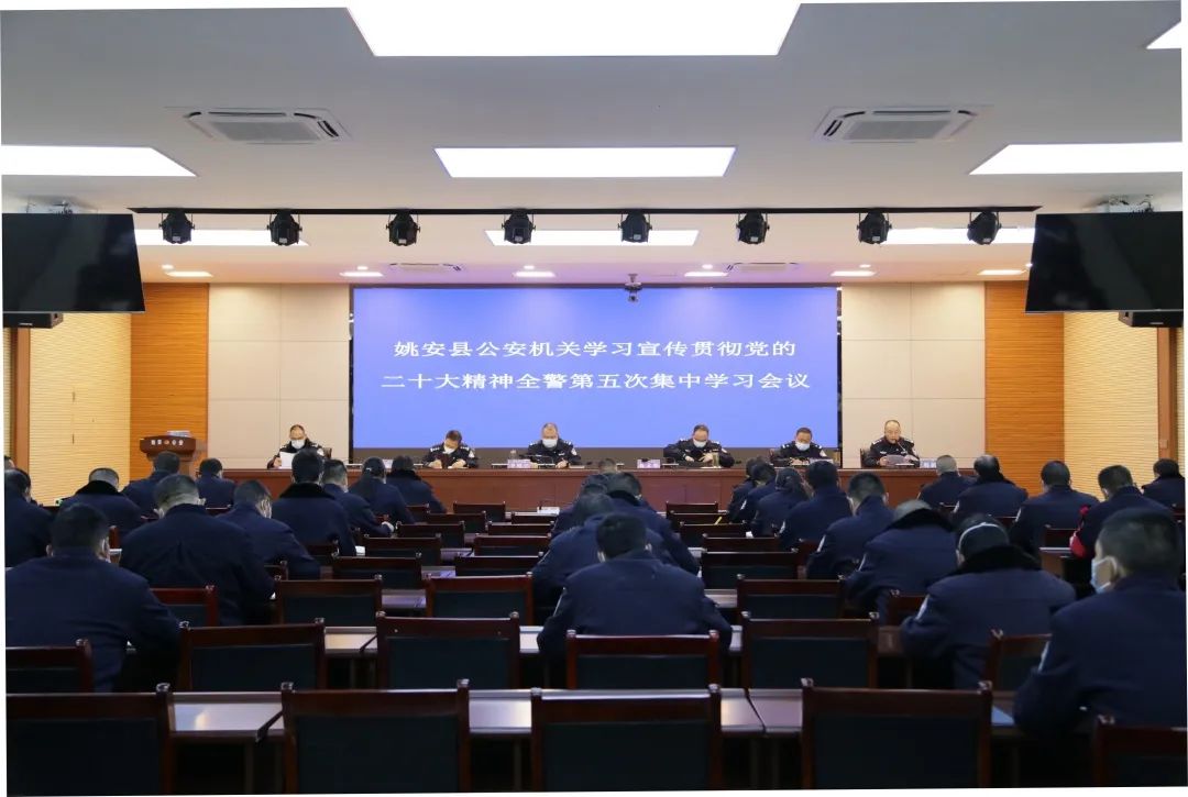 12月12日晚,姚安县公安局组织开展学习宣传贯彻党的二十大精神全警第五次集中学习。县人民政府副县长、县公安局党委书记、局长李绍宁,县公安局党委副书记、政委包文华出席会议。