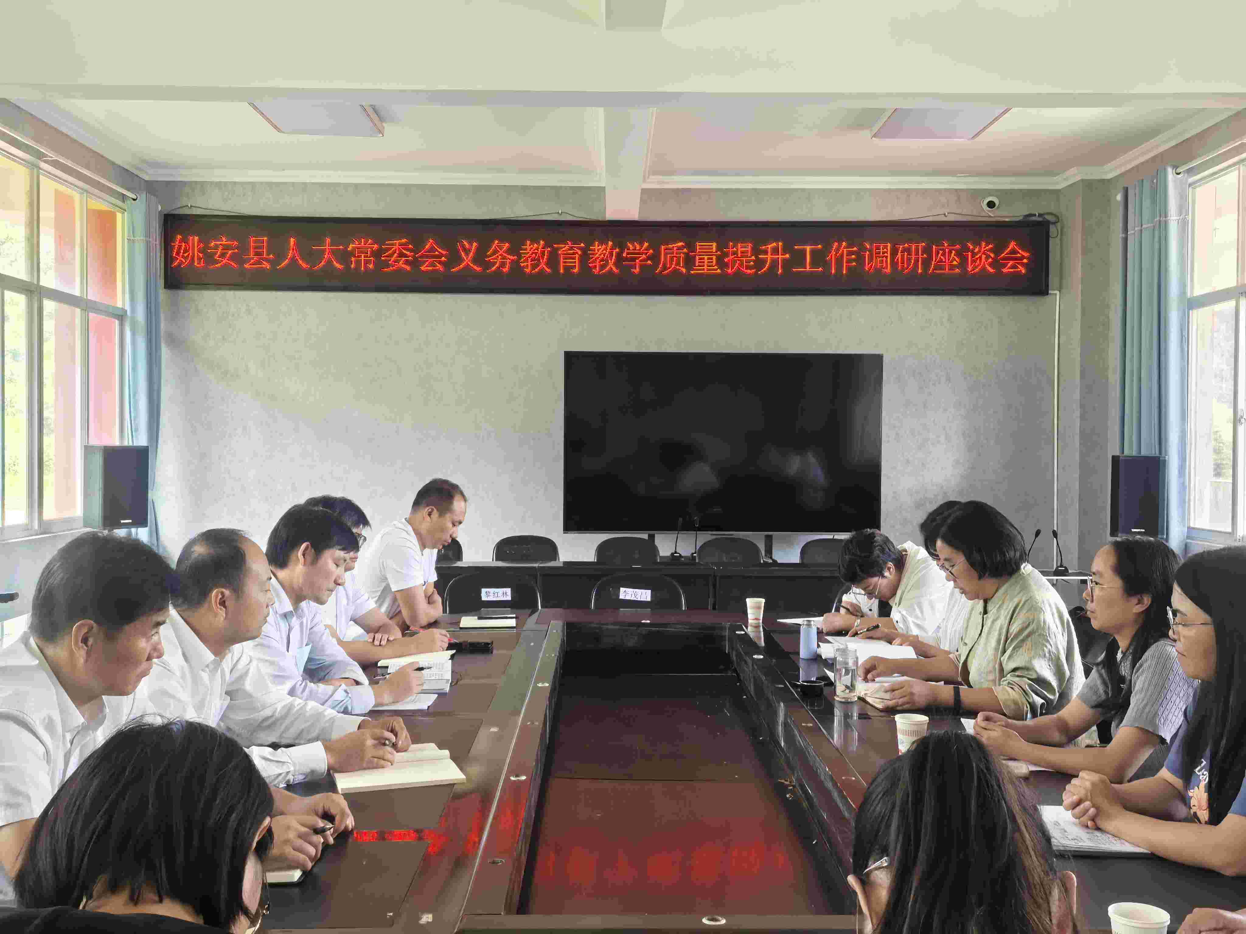 2024年9月11日,姚安县人大常委会副主任杨海虹等领导一行来到姚安县前场中学开展调研活动,听取我校义务教育阶段教育教学质量提升的工作情况,实地调研我校义务教育学校党组织领导的校长负责制、“校长职级制”和“县管校聘”改革成果,了解我校教育教学精细化管理、教师队伍建设、办学条件改善、教学水平提升和健全评价激励机制等工作。