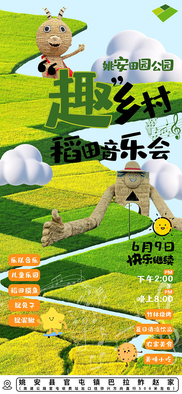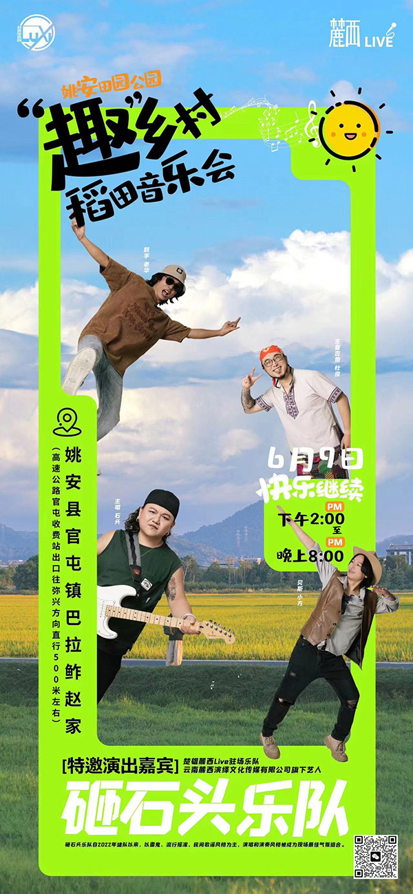 这个端午假期,让我们一起“趣”乡村,听稻田音乐会,让快乐翻倍!“砸石头乐队”将为您带来一场音乐盛宴,让音乐抚慰生活,让稻田浸润心灵。姚安官屯田园公园期待您的到来!