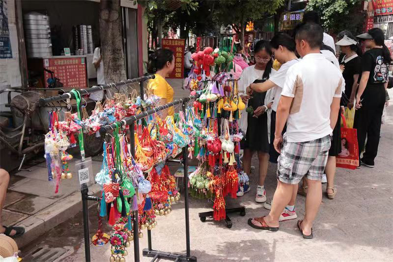 姚安端午节赶“药街”,是一个传统的民俗活动。这种以“药”为名的集市,满街药草飘香,浓浓乡愁萦绕。端午节当天,姚安县城十字街人山人海,药街上人头攒动,当地群众纷纷将自采自种的各种中草药拿到街上售卖,采购药材的人络绎不绝,买卖声争相吆喝,好不热闹。除了琳琅满目的中草药,还有各式各样、五彩斑斓的香囊、彝绣品和手工艺品,人们携幼扶老,给老人、小孩买几个中草药制成的香囊佩戴在身上,再买一些中草药回家煮水沐浴,以求祛病除邪、身体安康。