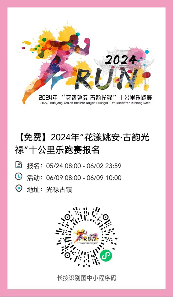 2024年“花漾姚安 古韵光禄”端午节10公里乐跑赛即将在中国历史文化名镇——光禄古镇开赛。欢迎大家参加精彩的10公里乐跑赛,挑战自我,感受运动的快乐与激情。