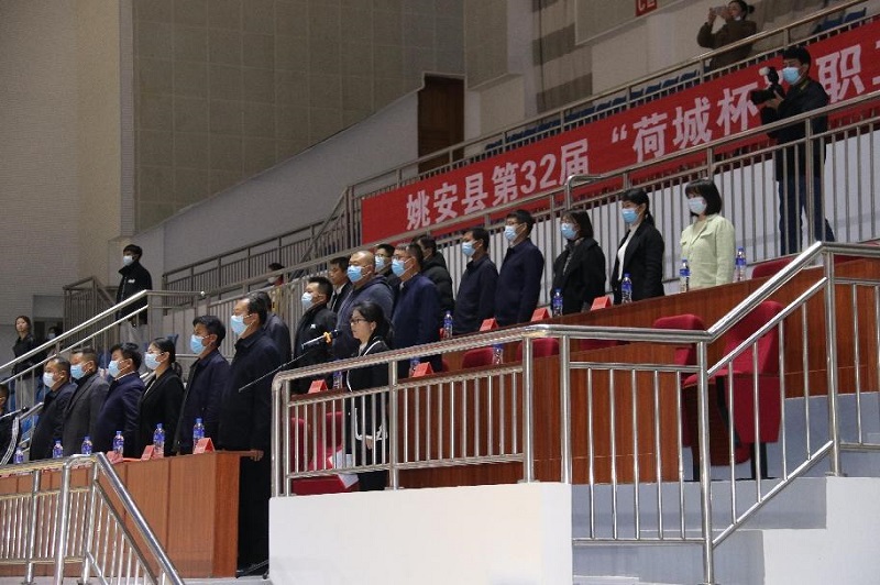11月22日19时30分,在欢快的运动员进行曲中,姚安县第32届“荷城杯”职工运动会在县体育馆开幕。