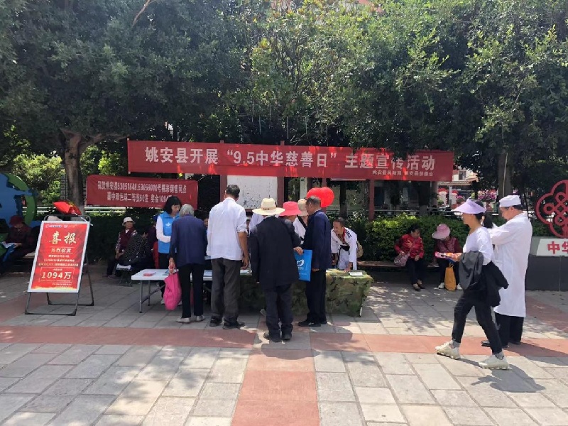 9月5日下午,在第八个“中华慈善日”到来之际,姚安县民政局联合姚安县慈善会、县红十字会、县疾控中心、姚安县初心社会工作服务中心等单位在梅葛广场开展第八个“中华慈善日”宣传活动。
