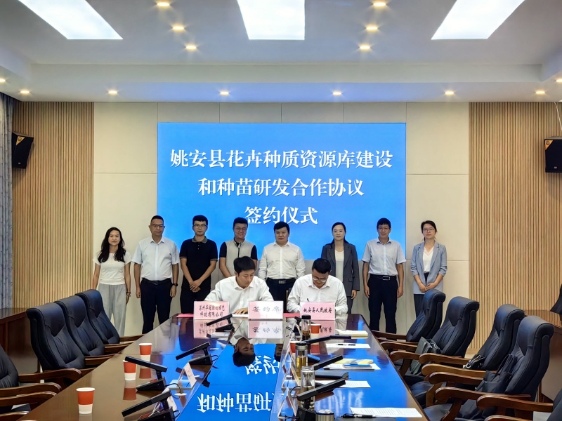 2025年9月5日上午,姚安县花卉种质资源库建设和种苗研发项目成功签约。县委副书记、县人民政府县长黄飞主持签约仪式并代表姚安县人民政府与苏州市华冠园创园艺科技有限公司签订项目合作协议。