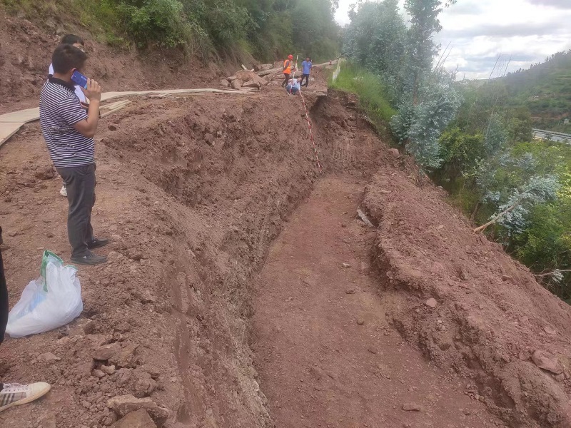 羊岗箐线,是羊岗箐村民出行的必经之路,公路坍塌让村民出行和烤烟等经济作物运输举步维艰。为了早日修复公路,恢复交通,避免安全事故的发生,7月9日,姚安县交通运输局党组书记、局长马驰带领技术人员到现场查看,经现场踏勘充分论证后提出修复方案,即刻组织人员和机械进行抢修。