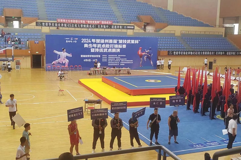 为深入贯彻落实习近平总书记关于体育工作的重要论述以及党的二十大精神,弘扬中华优秀传统文化,助力高原特色体育强州建设,推动《楚雄州全民健身实施计划(2021—2025年)》实施,促进楚雄竞技体育和青少年体育可持续发展,打造青少年校园精品体育赛事,2024年6月8日至10日,姚安县思源实验学校参加了2024年楚雄州首届“楚技武星杯”青少年武术散打锦标赛暨传统武术展演。