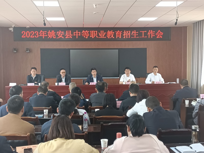 2023年4月12日,姚安县2023年中等职业教育招生工作会在姚安县职业高级中学召开。县教育体育局班子成员、姚安职中领导班子、全县初中校长及班主任参加会议。会议由县教育体育局李江华副局长主持。