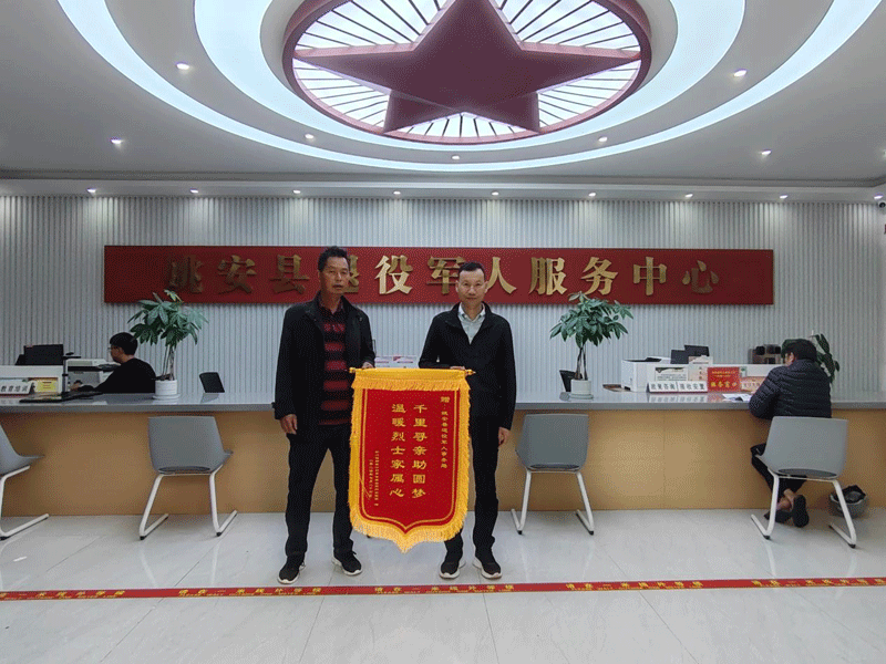 前不久,烈士苏春高亲属来到姚安县退役军人服务中心,为工作人员送来一面印有“千里寻亲助圆梦 温暖烈士家属心”字样的锦旗,表达衷心的感谢。英雄已逝,精神长存。在这次寻亲任务中,大家深受教育,英雄事迹将永远铭刻在大家心中,英雄精神将永远激励大家不断前行。