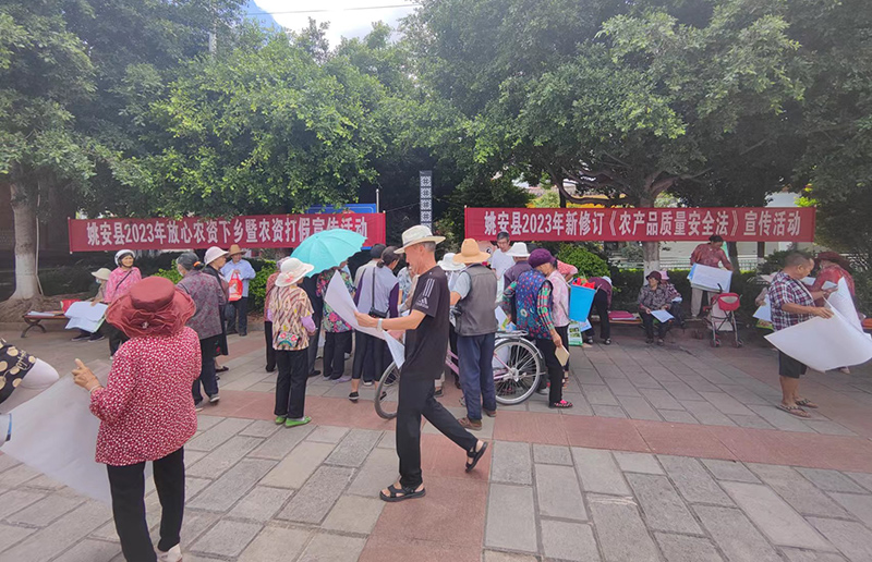 一是精心组织采取多种形式宣传。2023年5月以来姚安县农业农村局组织县动物卫生监督所、县农业行政综合执法大队、县农产品质量安全中心在县梅葛广场、前场镇、光禄镇等乡镇开展了新修订《中华人民共和国农产品质量安全法》宣传、放心农资下乡暨农资打假宣传活动。累计发放宣传材料9种共计12000余份。