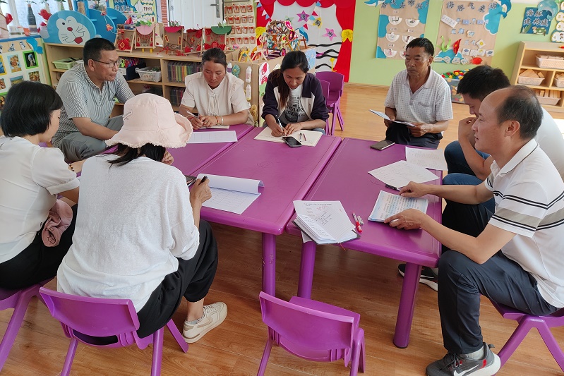 最后马游小学校长罗文武带领所有跟岗教师对马游村级幼儿园普及普惠明白卡进行逐项解读,细化指标要求,规范资料整理,切实保障此项工作高标准高质量完成。